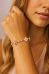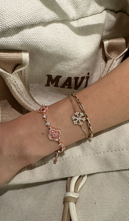 Özenle işlenen sedef çiçek detayı, ışığı her açıdan yansıtıp narin bir parıltı sunuyor. Tek başına ya da kombinlerle, bileğinize zarif bir dokunuş katıyor. 🌸 🌸 🌸
